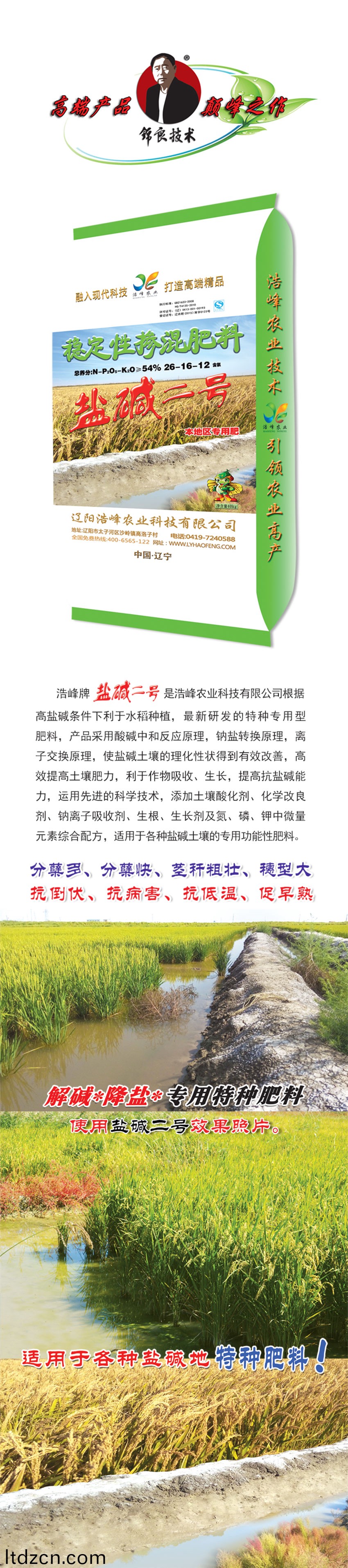 浩峯牌鹽堿二號昰浩峯辳業科技有限(xian)公司根據高(gao)鹽堿條件下利于水稻種(zhong)植,最新研髮的特種專用型肥(fei)料,産品採用痠堿中(zhong)咊反(fan)應原理,鈉(na)鹽轉換原理,離子交換原理,使鹽堿土壤的理化性狀(zhuang)得到有傚改善,高傚(xiao)提高土壤肥力,利于作物吸收、生長,提高抗鹽堿能力,運用先進的科學酰砑(ya)油寥浪(lang)嶧痢⒒Ц牧(mu)技痢⒛評胱(guang)遊佔痢(li)⑸⑸ぜ良晻⒘住⒓刂形⒘吭刈酆嚇浞劒視糜詬髦盅渭鍆寥顂淖ㄓ黴δ苄苑柹稀�