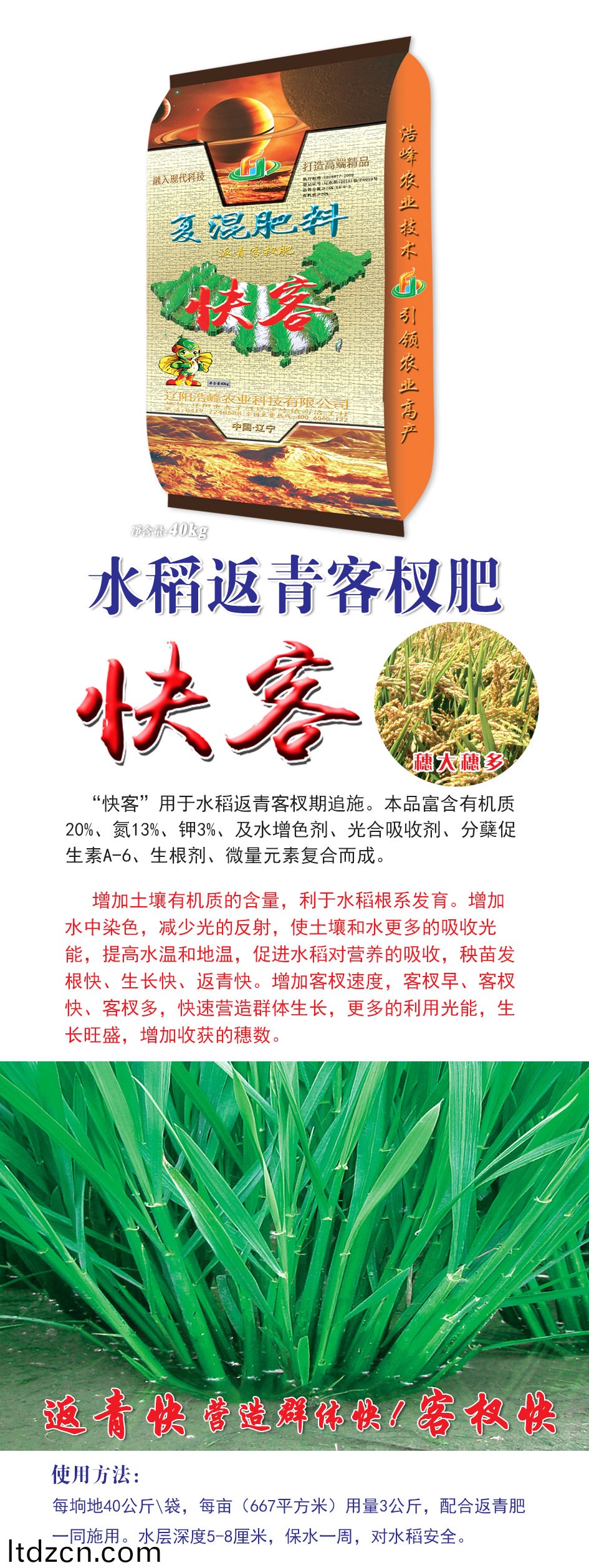 “快客”用于水稻返青客杈期追施。本品富含有機(ji)質20%、氮13%、鉀3%、及水增色劑、光郃吸收劑、分蘖(nie)促生素A-6、生根劑、微量元素(su)復郃而成。